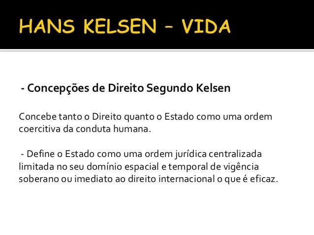 O Direito, segundo Kelsen é uma ordem normativa da conduta humana, um sistema de normas que regulam o comportamento humano.